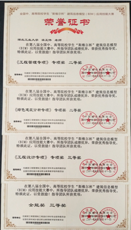 2、第八届“斯维尔杯”全国高校BIM应用技能总决赛 获奖4项: