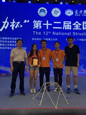 全国大学生结构设计竞赛由中国高等教育学会工程教育专业委员会、高等学校土木工程学科专业指导委员会、中国土木工程学会教育工作委员会和教育部科学技术委员会环境与土木水利学部共同主办。是土木工程学科培养大学生创新意识、团队精神和实践能力的最高水平学科性竞赛,本届竞赛共吸引了清华大学、同济大学、上海交通大学、浙江大学、香港大学等107所高校108支优秀代表队参赛,参赛队是从全国542所高校1236支代表队参加的各省(市)分区赛选拔产生的精英代表队,全国大学生结构设计竞赛显示出最具特色、最有影响力和富有成效的重大盛会,为培养大学生解决复杂工程问题的能力和创新意识提供了很好的交流平台。