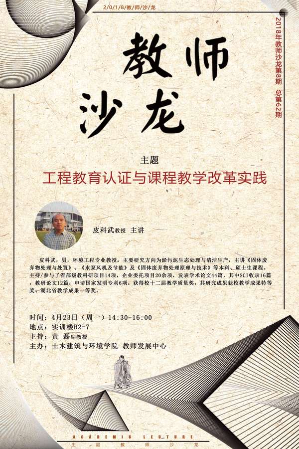 皮科武,环境工程专业教授,主要研究方向为淤污泥生态处理与清洁生产,主讲《固体废弃物处理与处置》、《水泵风机及节能》及《固体废弃物处理原理与技术》等本科、硕士生课程、主持/参与了省部级教科研项目14项,企业委托项目20余项,发表学术论文44篇,其中SCI收录16篇,教研论文12篇,申请国家发明专利6项。获得校十二届教学质量奖,其研究成果获校教学成果特等奖、湖北省教学成果一等奖。