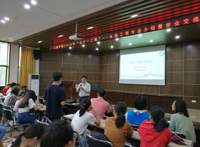 为进一步实施领导干部联系学生“五个一”工程,做好全员育人引导工作。6月8日上午,校长刘德富来到土建学院17级环境类班级,参加水务工程专业介绍暨学业交流活动,与现场四个班104名同学进行面对面的交流。